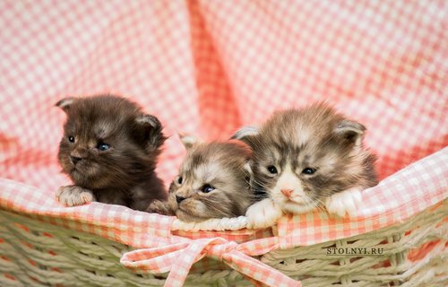 17 июля котята мейн-кунов от Барби и Мони отмечают свой первый день рождения. Им исполняется ровно месяц.