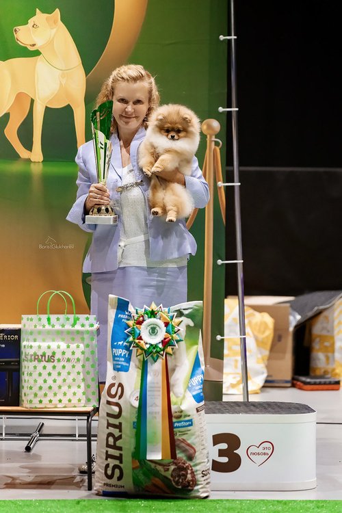 Лола (Помстайл Юникью Роял Голд) заняла два призовых места среди щенков в возрастной категории от 3 до 6 месяцев (Best In Show Baby, BIS Baby).
